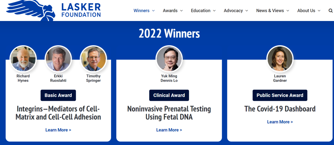 拉斯克医学奖是美国最具声望的生物医学奖项。1946年,由有“现代广告之父”之称的美国著名广告经理人、慈善家阿尔伯特·拉斯克(Albert Lasker)及其夫人玛丽·沃德·拉斯克(Mary Woodard Lasker)共同创立,旨在表彰医学领域作出突出贡献的科学家、医生和公共服务人员。拉斯克奖(Lasker Award)每年颁发给对医学科学做出重大贡献的在世人士,素有“美国的诺贝尔奖”之美誉,是美国最具声望的医学生物奖项;更被喻为“诺奖风向标”,已有86位拉斯克奖得主获得了诺贝尔奖。
