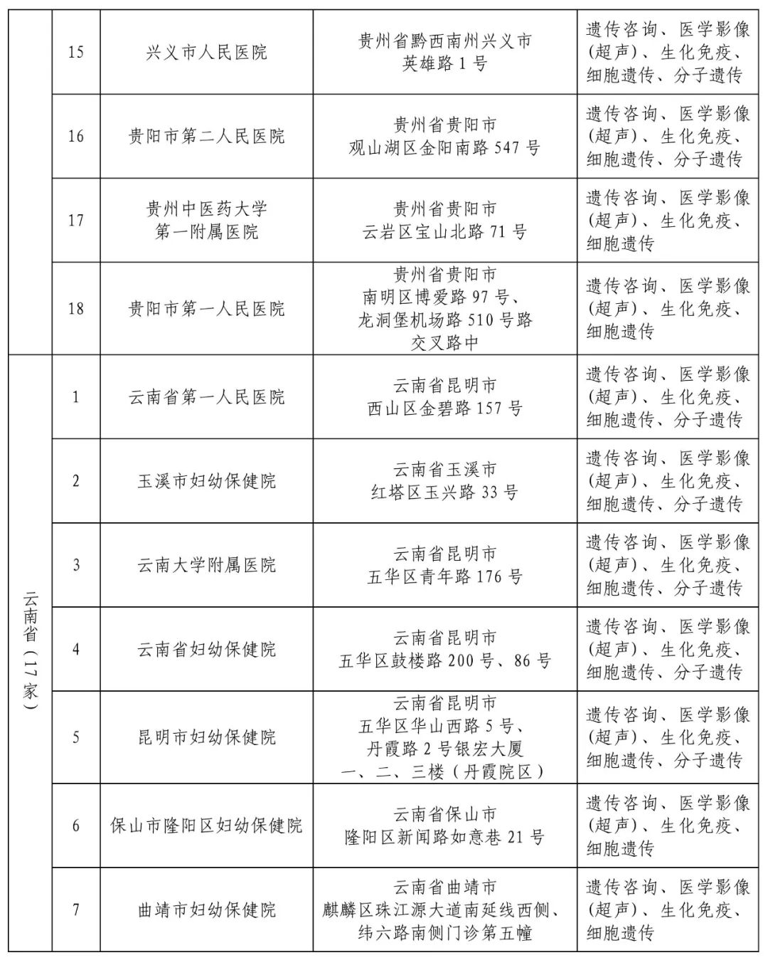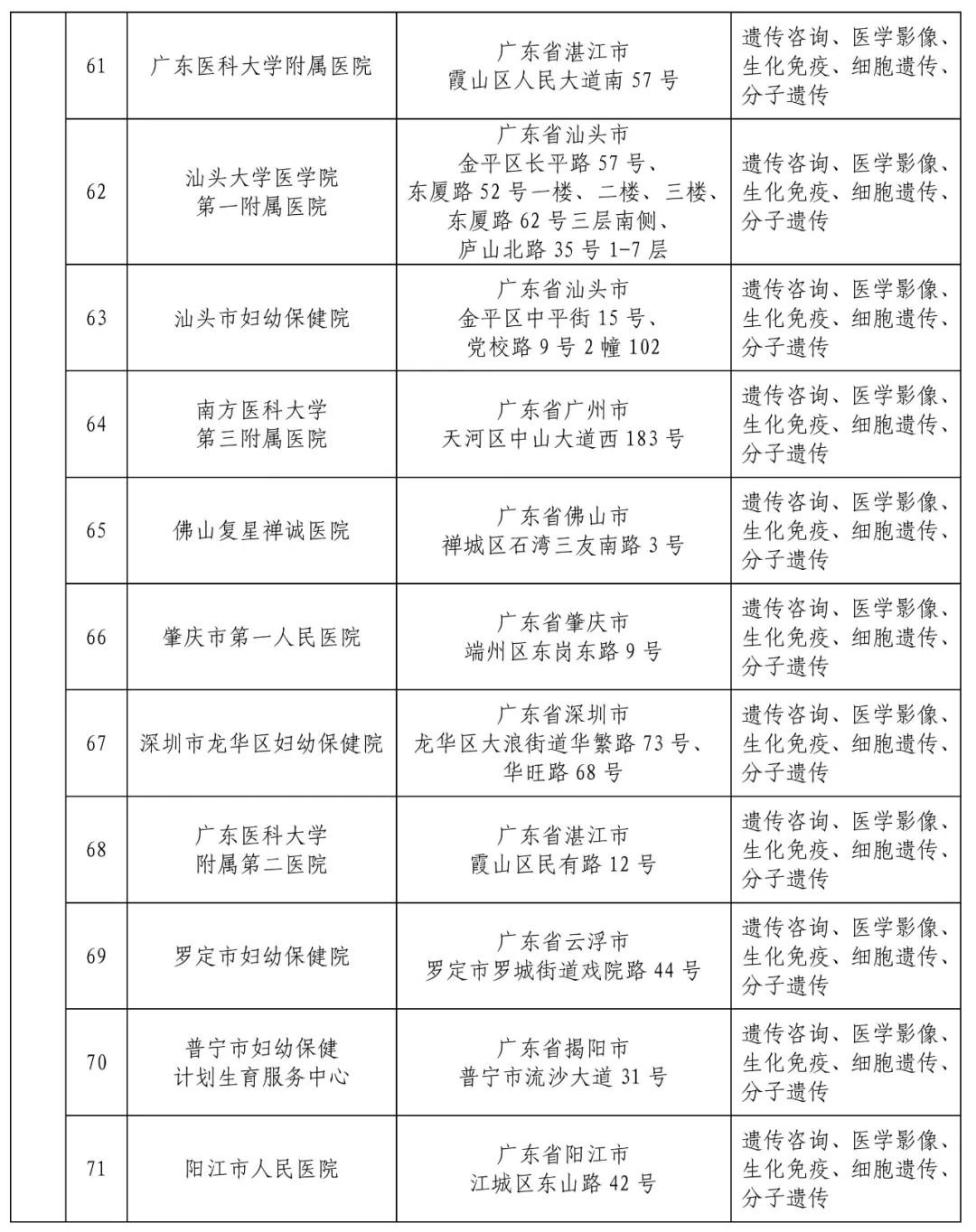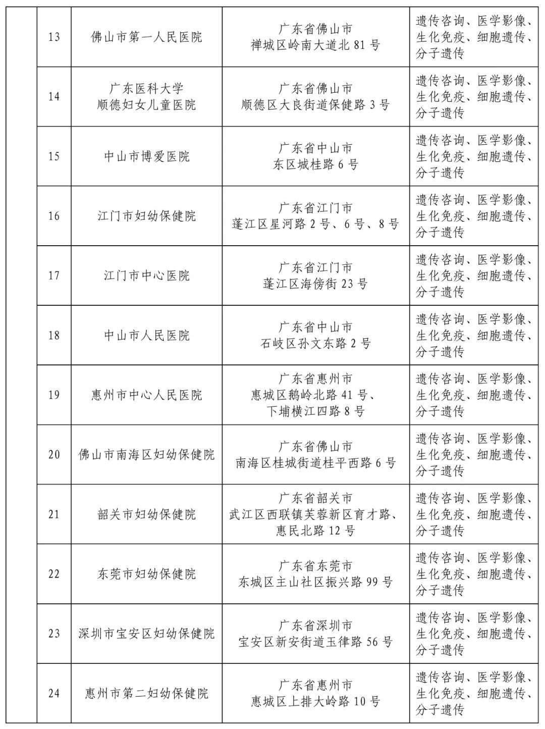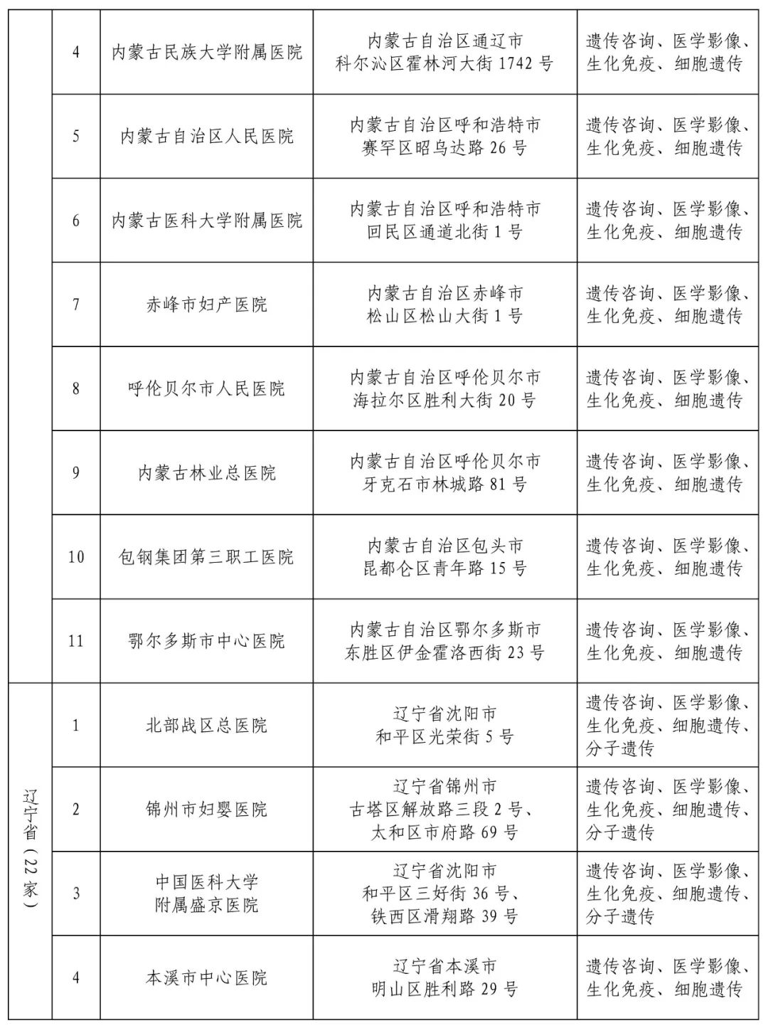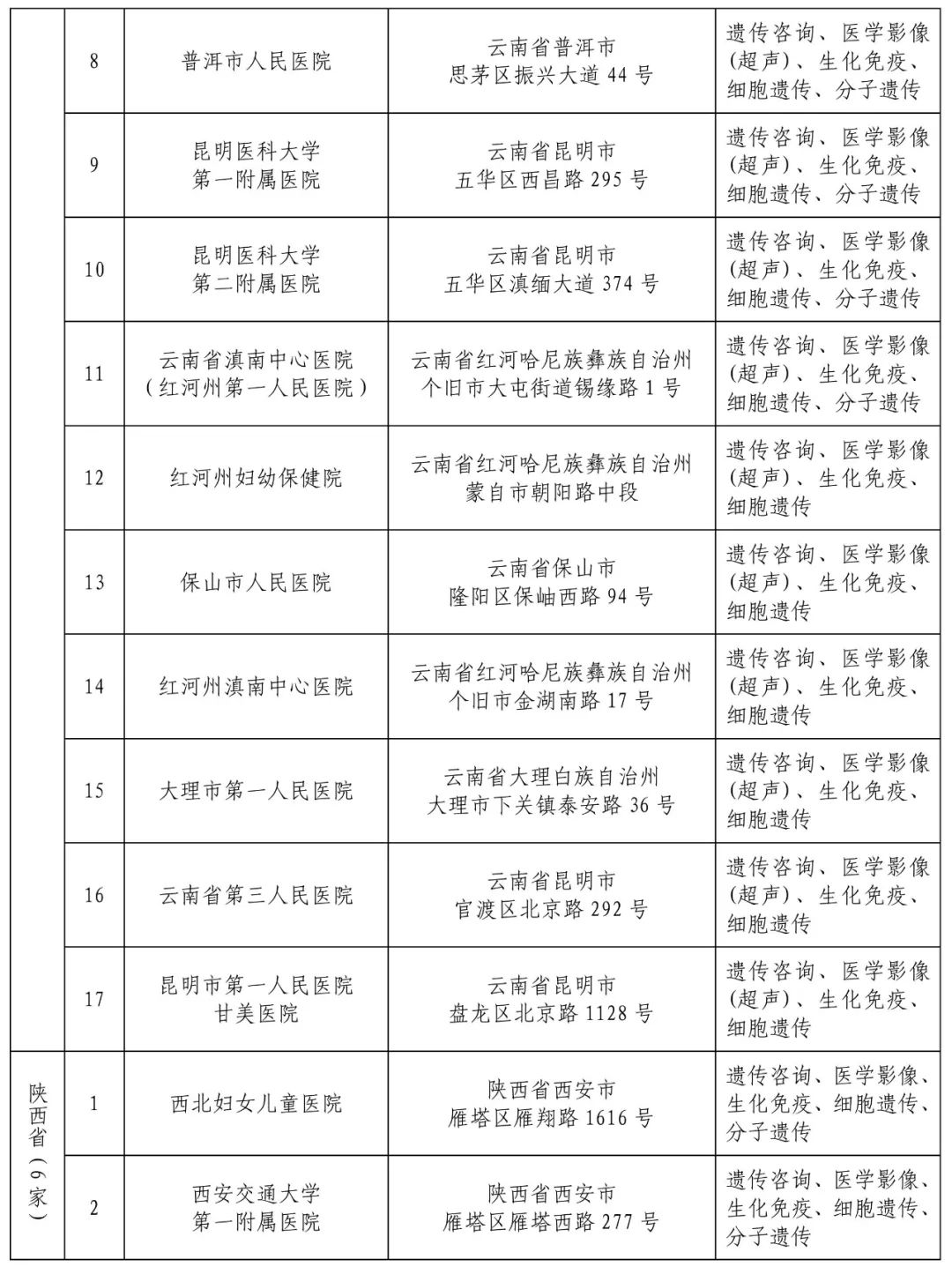 国家卫健委发布了经批准开展产前诊断技术的医疗机构名单(截至 2023 年 6 月 30 日共 527 家,按省级行政区划和机构准入时间排序),其中北京市10家,天津市4家,河北省19家,山西省8家,内蒙古自治区11家,辽宁省22家,吉林省6家,黑龙江省7家,上海市10家,江苏省23家,浙江省22家,安徽省19家,福建省21家,江西省14家,山东省40家,河南省29家,湖北省36家,湖南省28家,广东省73家,广西壮族自治区30家,海南省6家,重庆市6家,四川省23家,贵州省18家,云南省17家,陕西省6家,甘肃省4家,青海省3家,宁夏回族自治区3家,新疆维吾尔自治区9家。详细名单如下。