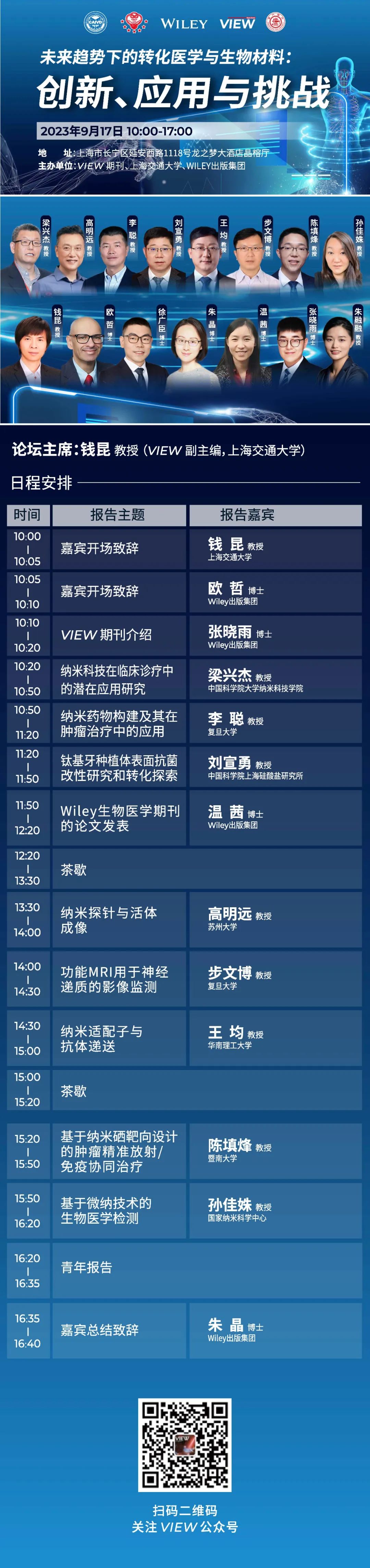 在这个充满创新和变革的时代,转化医学和生物材料主题论坛将探讨转化医学和生物材料领域带来的前所未有的机遇和挑战。我们相信通过分享最新的研究成果、探讨未来的趋势和应用,并共同面对所面临的困难,我们能够推动这一领域的发展,为人类的健康福祉做出更大的贡献。
