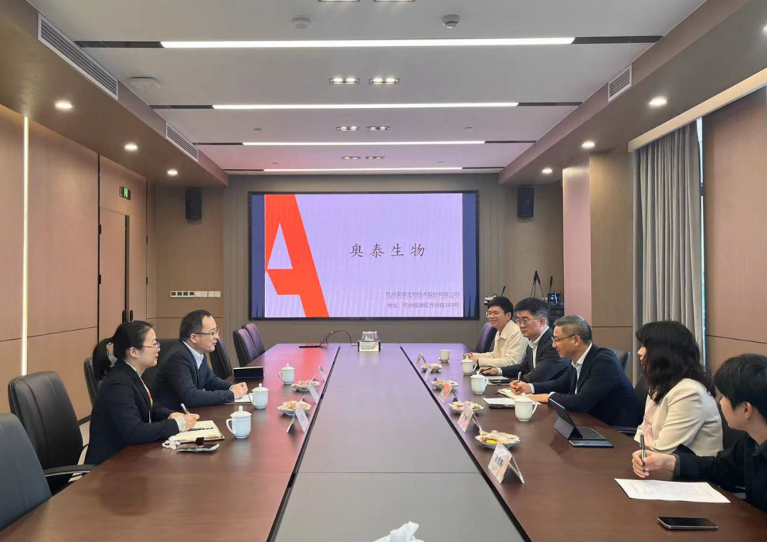 近日,杭州市钱塘区委常委、组织部部长李丰莅临杭州奥泰生物技术股份有限公司走访考察,区相关领导陪同调研。