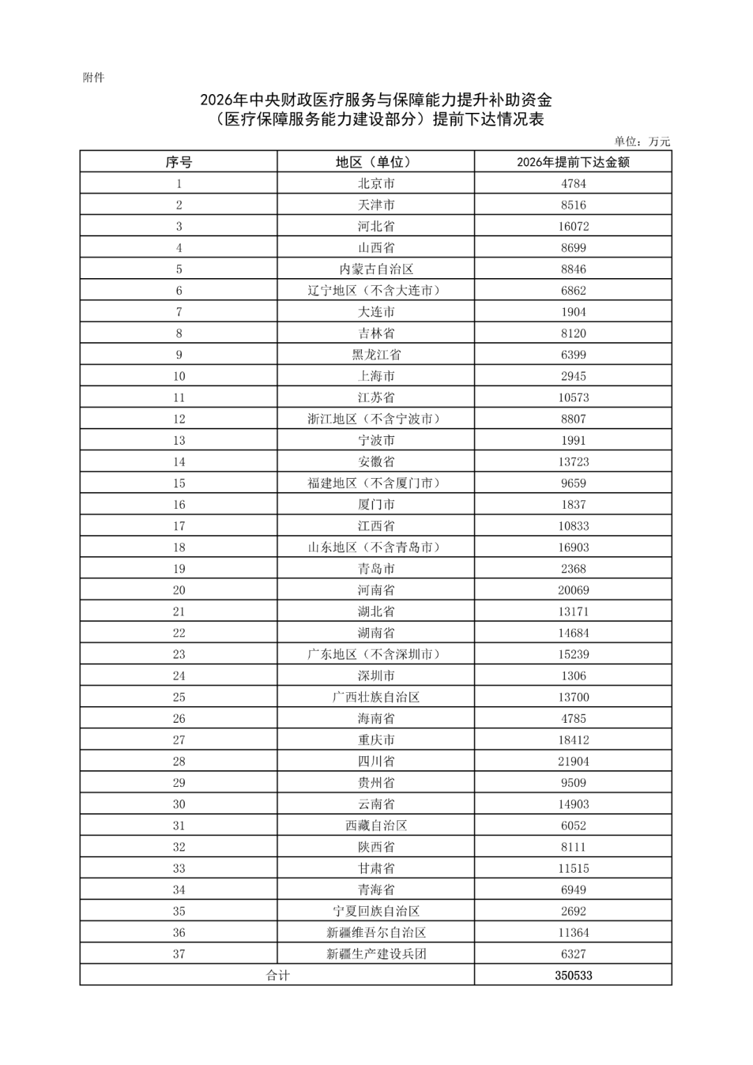 11月27日,财政部、国家医保局为提高预算完整性,加快支出进度,现提前下达2026年医疗服务与保障能力提升补助资金预算通知,其中医疗保障服务能力建设部分,总金额:35.0533亿元。