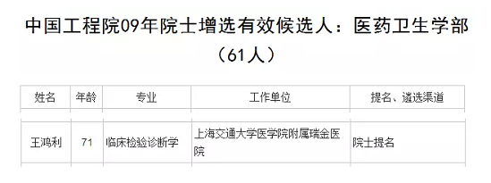 其实很早以前就有检验前辈参加院士竞选,下面注意回顾一下,虽然未能竞选成功,但是检验前辈求学精神永远值得我们学习。