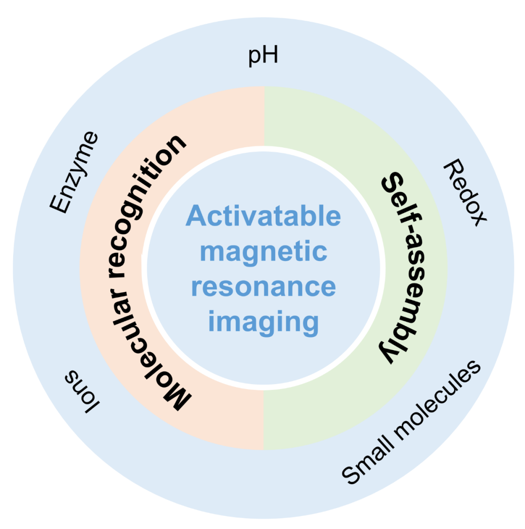 磁共振成像(MRI)是一种基于核磁共振现象的成像技术。由于其高组织穿透深度、无创成像、高空间分辨率和层析成像能力,MRI已被广泛用于临床诊断。在外部强磁场中,磁性原子核可以吸收具有特定的波长的射频脉冲,之后磁信号的弛豫过程可以用来进行成像。MRI技术的灵敏度较低,因此临床上通常会检测患者组织中的水的氢原子核产生的信号。此外,通过降低临近水分子的弛豫时间来增强信号特异性的MRI造影剂对于临床成像是必不可少的。造影剂的化学性质会影响MRI信号。因此,可以使用对酶活性、pH和温度等微环境响应的造影剂,来开发可激活的MRI探针。通过在细胞和分子水平上监测疾病相关的生理和病理过程,可激活的MRI探针有助于更好的诊断疾病。