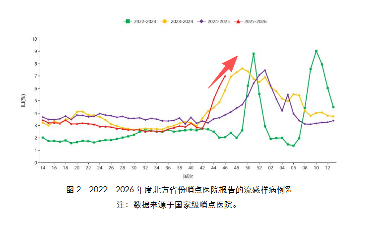 根据国家疾病预防控制中心,监测数据显示,近期南、北方省份流感活动上升。预计流行高峰的时间出现在12月中下旬和1月初。上周门诊流感病毒病例占比38.1%,较前一周增加7.4%,住院病例增加1.6%。