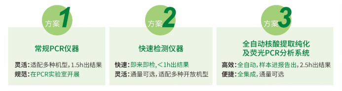 搭载常规PCR+快速检测+全自动一体机等多平台,满足不同用户需要。