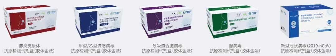 “抗原”检测平台,包括五大“金标”诊断,覆盖甲乙型流感病毒、呼吸道合胞病毒、肺炎支原体、腺病毒、新冠病毒。操作简单,结果快速直观,可广泛适用于各级医院门急诊、发热门诊以及居家自检等快速筛查场景。