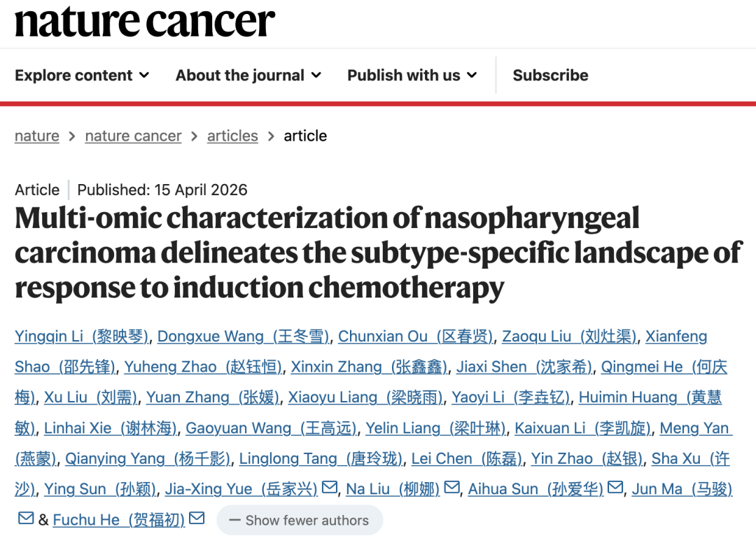 4月15日,国家蛋白质科学中心(北京)、广东智慧医学国际研究院贺福初教授团队与中山大学肿瘤防治中心马骏教授团队,在鼻咽癌精准治疗的蛋白质组学机制方面取得突破,相关成果在国际顶级肿瘤学期刊《自然・癌症》(Nature Cancer)发表,为上述问题提供了清晰的“导航图”。