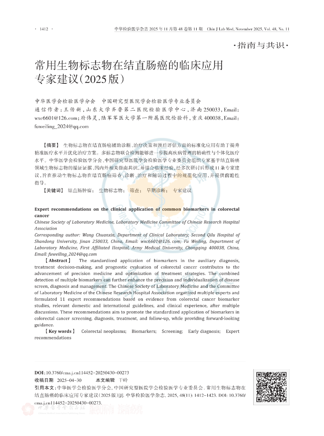常用生物标志物在结直肠癌的临床应用专家建议(2025版)